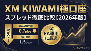 未分類 XM KIWAMI極口座のスプレッド徹底比較【2026年版】EA運用に最適な理由 XM KIWAMI極口座はEA自動売買に最適な口座です。ドル円0.7pips・ゴールド1.5pipsという極狭スプレッドと手数料無料の組み合わせで、取引コストを最小化。スタンダード口座・ゼロ口座との比較表で詳しく解説します。 2026.03.25 未分類